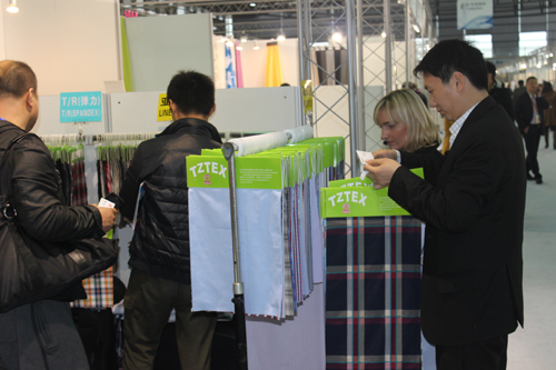 2013年3月12日,公司执行董事丁健先生和国际贸易部的业务精英们参加2013.上海国际时尚服装面料展。